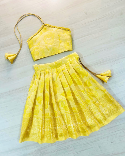 Summery Yellow Rose Halter Neck Silk Lehenga Set