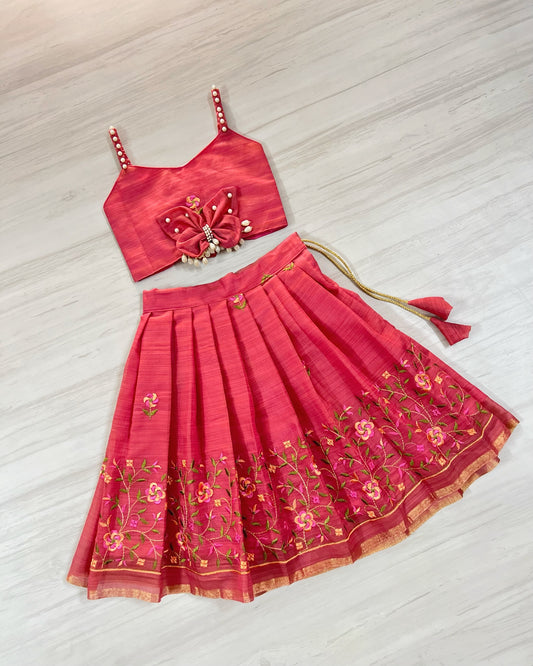 Raspberry Pink Pearly Butterfly Cute Lehenga Set