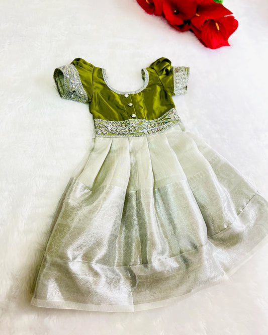 Olive Oasis: Silver Accented Anarkali