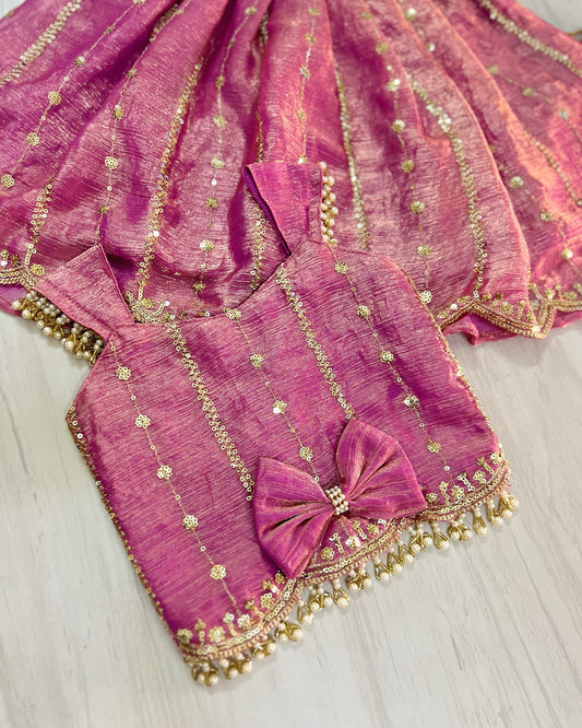 Rare Onion Pink Embroidered Pearl Embellished Lehenga Set