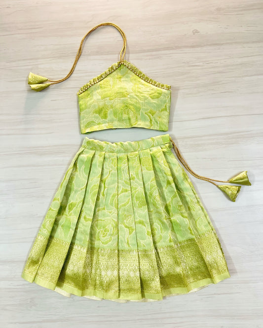 Lovely Lime One Side Floral Embellished Shimmery Lehenga Set | The Silkberry