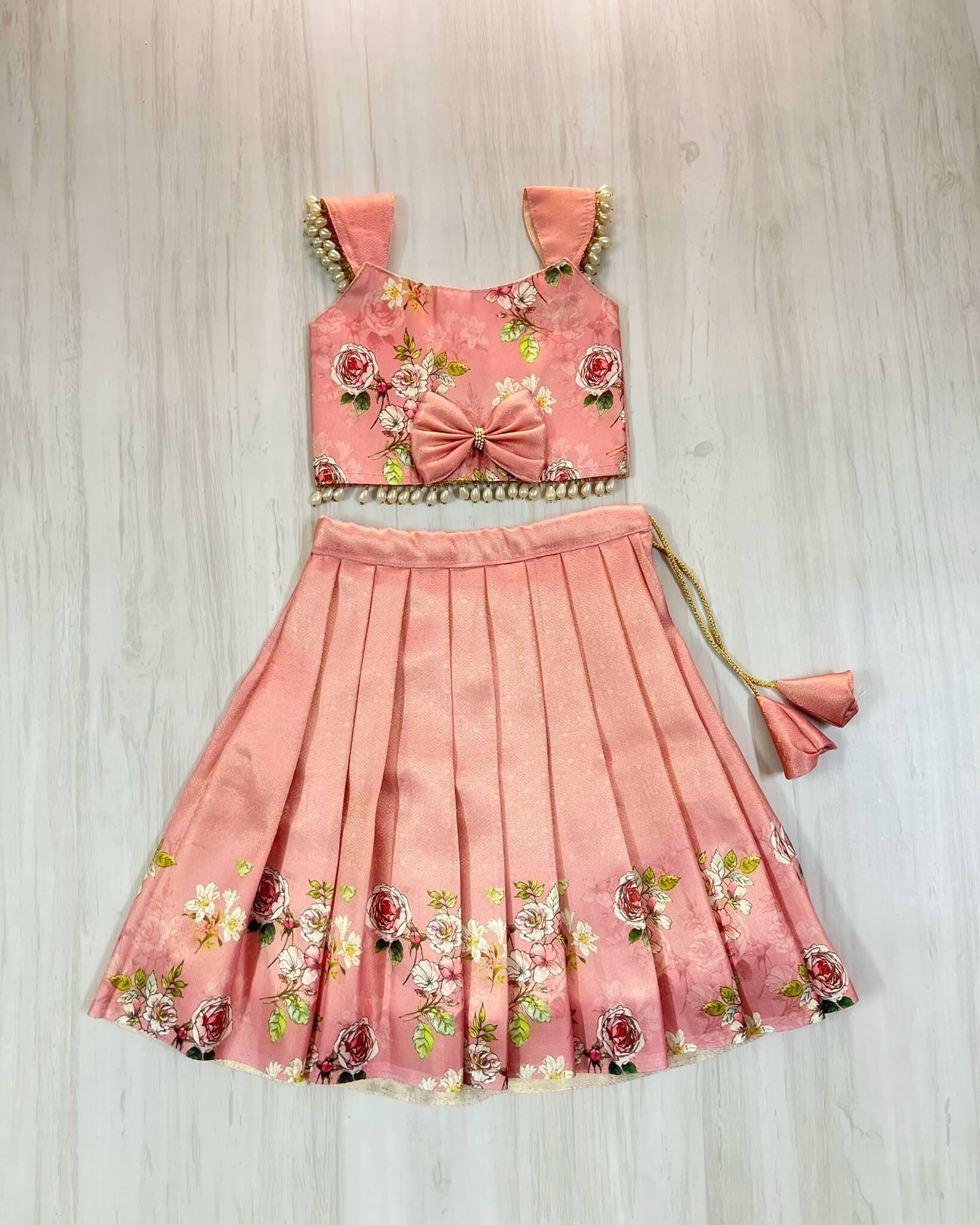 Floral Dusty Pink Pearl Embellished Lehenga Set | The Silkberry