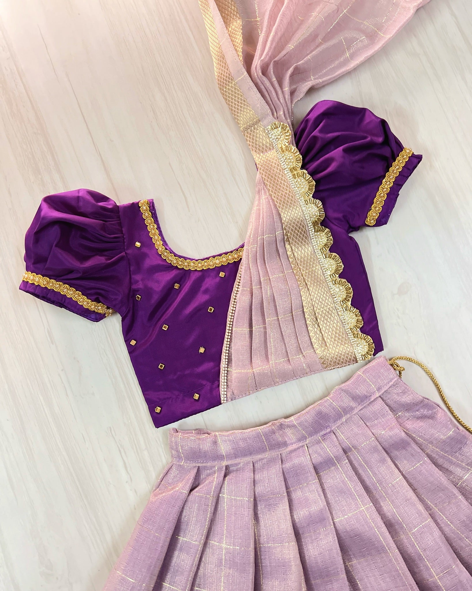 Wild Violet Half Saree Style Stone Embellished Tissue Silk Lehenga Set | The Silkberry
